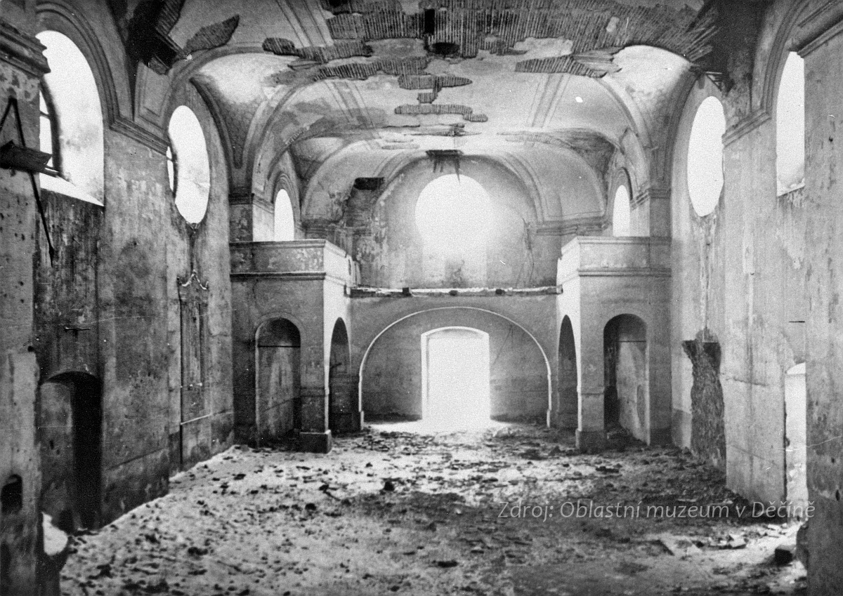 Stav interiéru kostela před demolicí