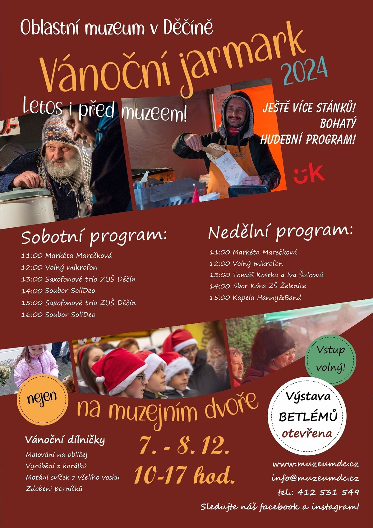 Vánoční jarmark se koná 7. a 8. prosince 2024, vždy od 10 do 17 hodin.