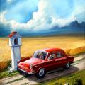 Vystavené práce jsou pokusem o jakýsi specifický subžánr krajinomalby: auto v krajině. Zkulturněním krajiny odvěkou přítomností člověka se silnice a auta stala integrální součástí krajinných scenérií. Pak se i červené Škoda 1000 MB míjející Boží muka v horkém srpnovém dni může stát důležitým komponentem malebného výjevu.